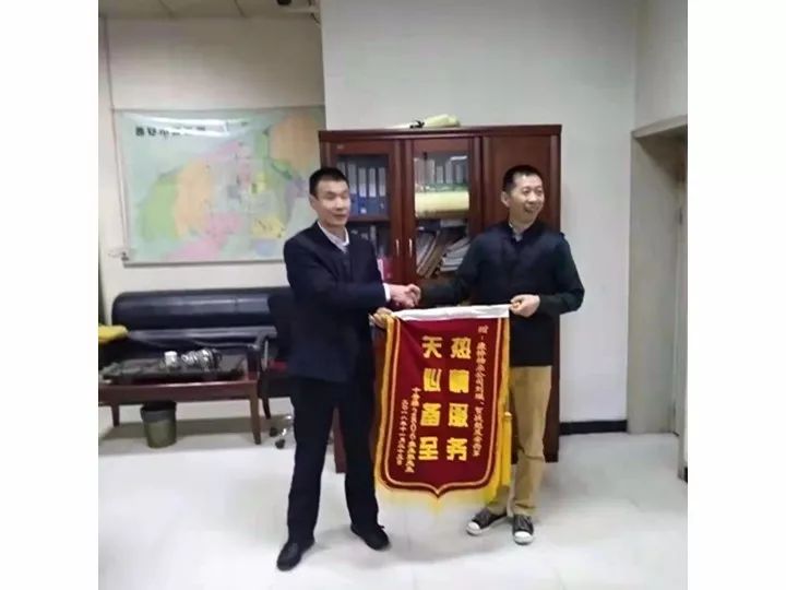 业主张晓辉向物业公司副总经理马刚赠送锦旗