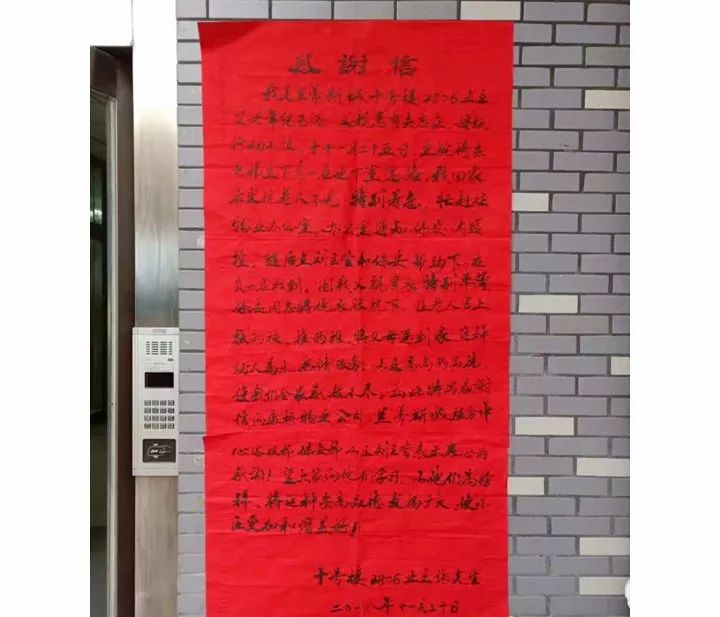 业主张晓辉给物业公司兰蒂斯城项目的感谢信